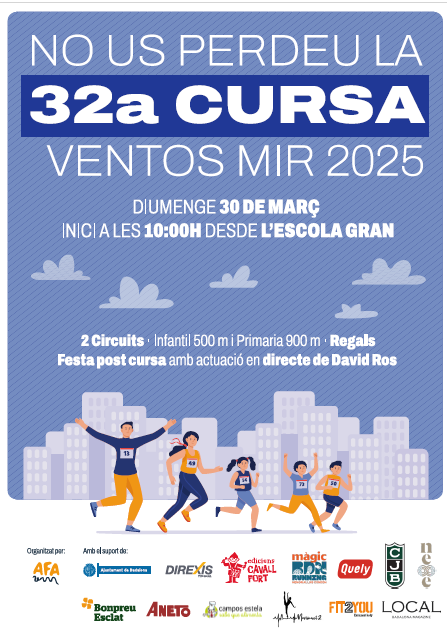 Aquest any 2025 hem celebrat la 32a cursa Ventós Mir el 30 de març.